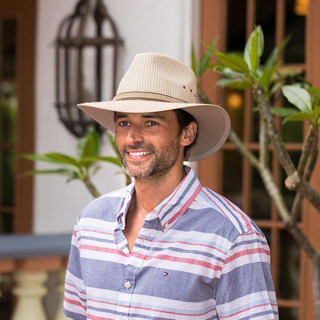 The ADAM hat from the Stampede Collection is crafted with a genuine leather band and premium canvas stitching, featuring a leather tassel and a vented crown for breathability. It's finished off with an elegant 3.25 inch brim. Experience top-level protection from the elements.