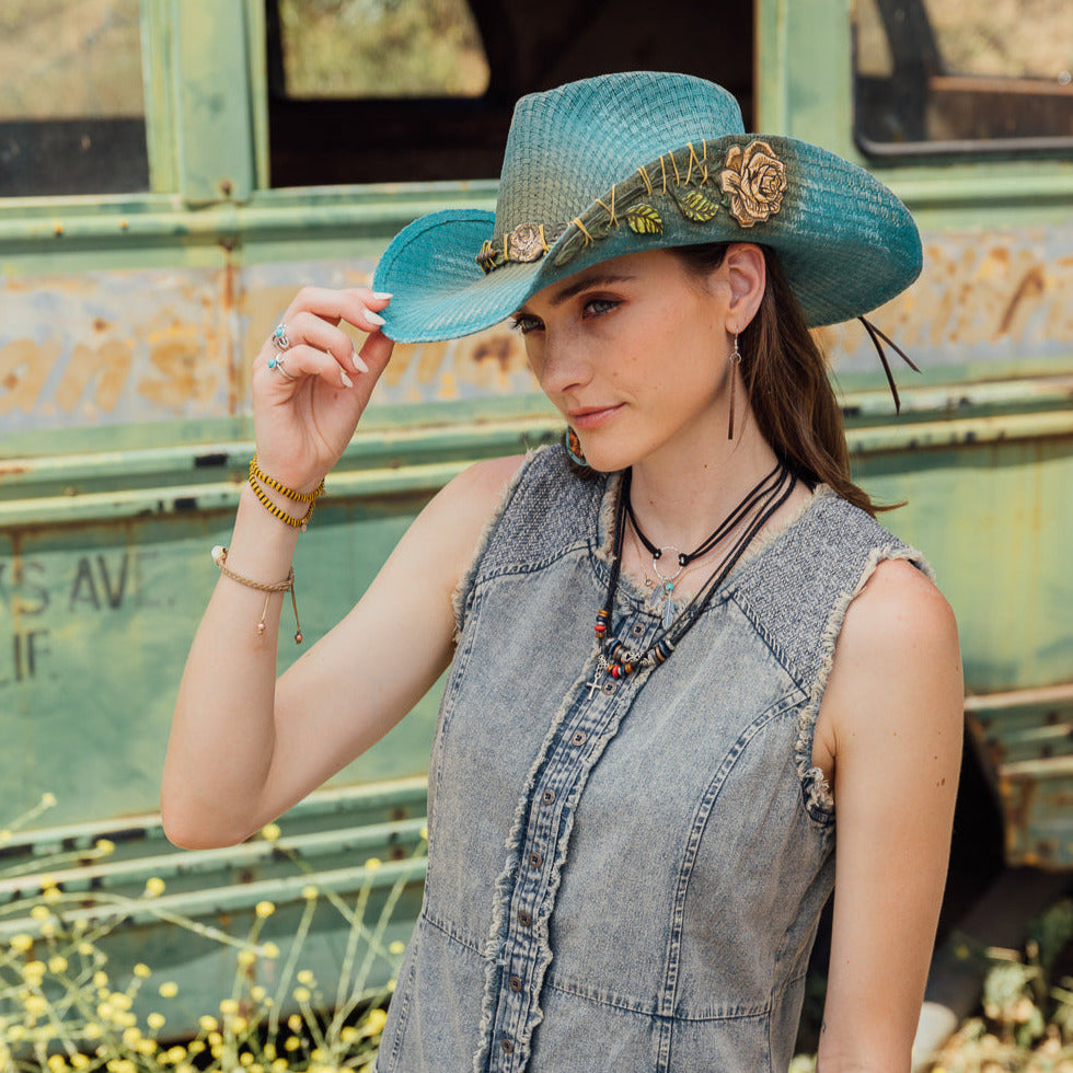 This premium canvas hat, featuring a 3 2/3 inch brim, offers style and versatility with its one size fits most design. The durable material and sophisticated teal blue color make it perfect for any occasion. Expertly crafted with precision and care, AZURE will elevate your fashion game.