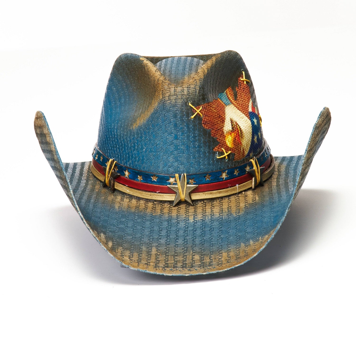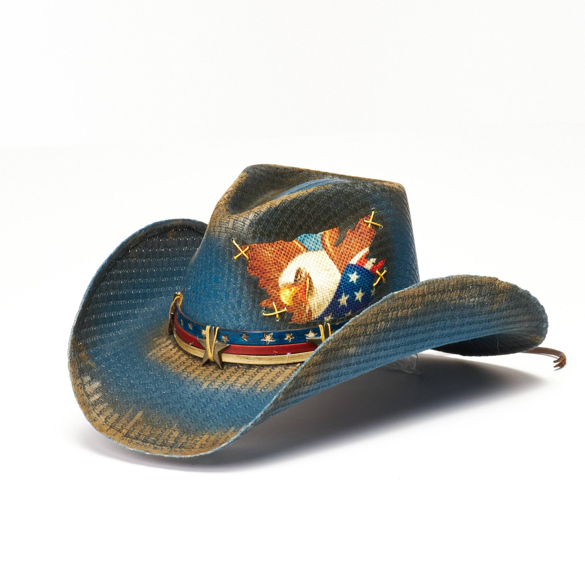 BLUE EAGLE is part of our Stampede Collection and crafted with premium canvas for a look and feel that stands out. The design features a unique eagle painting and an American leather band adorned with stars and stripes, making it the perfect piece for any patriotic wearer.