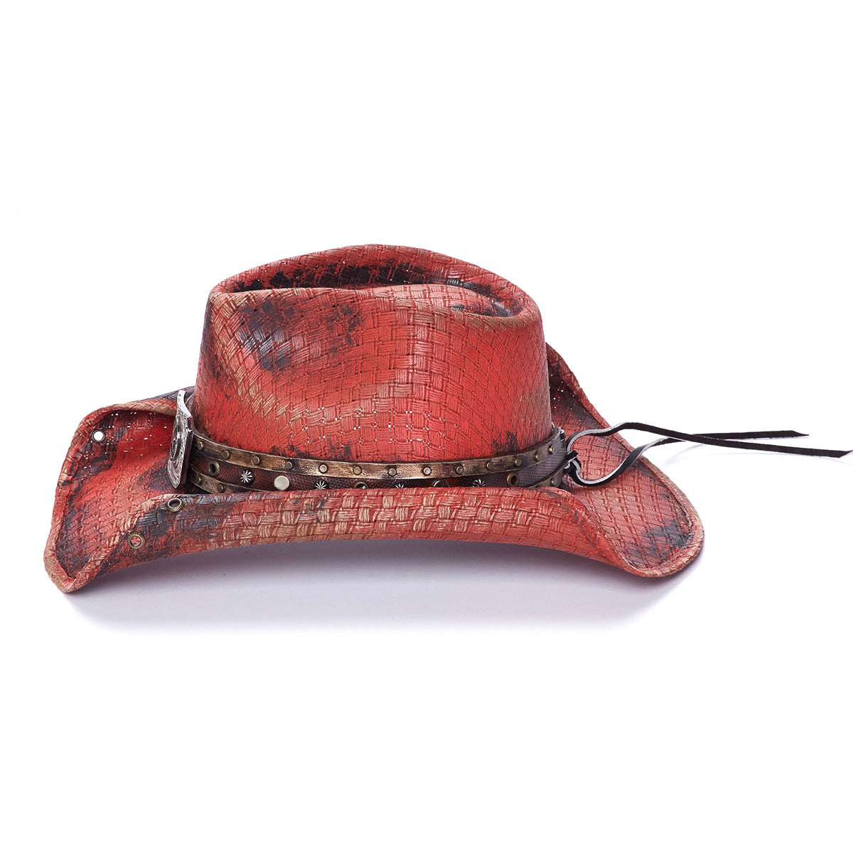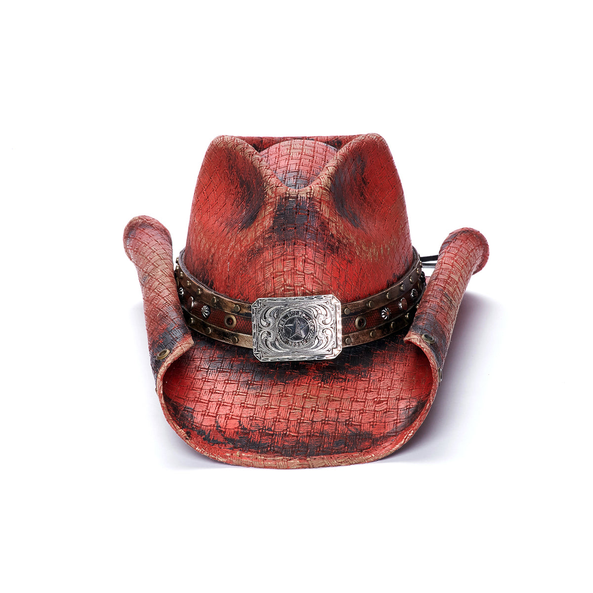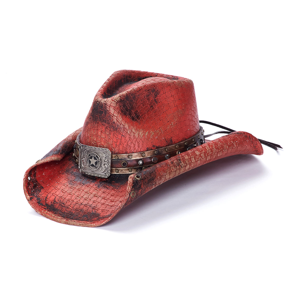 The CALICO QUEEN Hat is designed for true cowboys. Crafted from premium canvas and featuring a genuine leather band with mini studs and a large star buckle, this hat offers a striking look with all the durability necessary for the Stampede Collection. The rolled brim provides 3.75 inches of protection from the sun to complete the hat's style and performance.