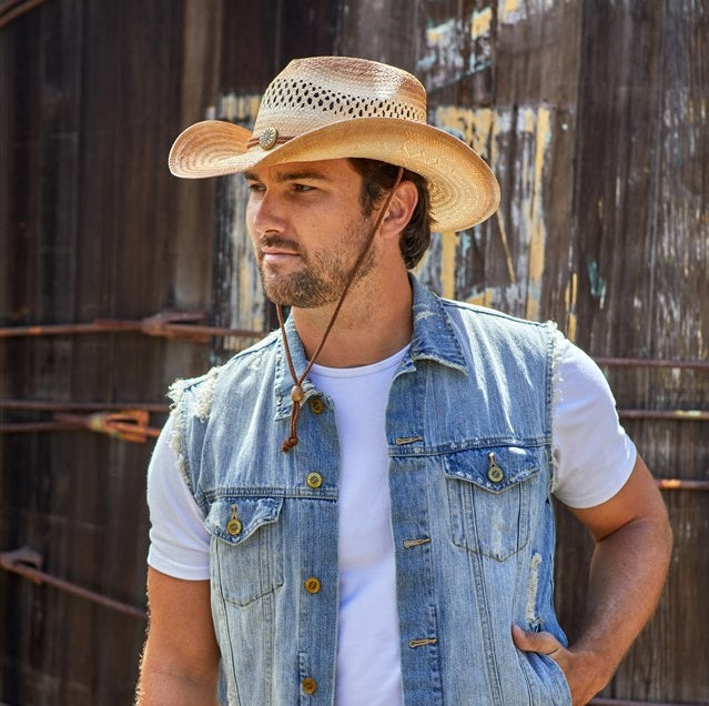 The CH20-2292 from the Saddleback Collection is the perfect choice for a sunny summer day. Made with genuine Toyo straw, genuine leather braid and a small sun buckle, this hat is designed for durability and comfort. A shapeable wired brim and adjustable chin chord ensure the perfect fit, while the 3.5 inch brim with vented crown keeps you cool and protected from the sun.
