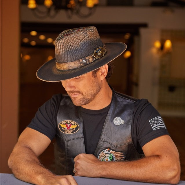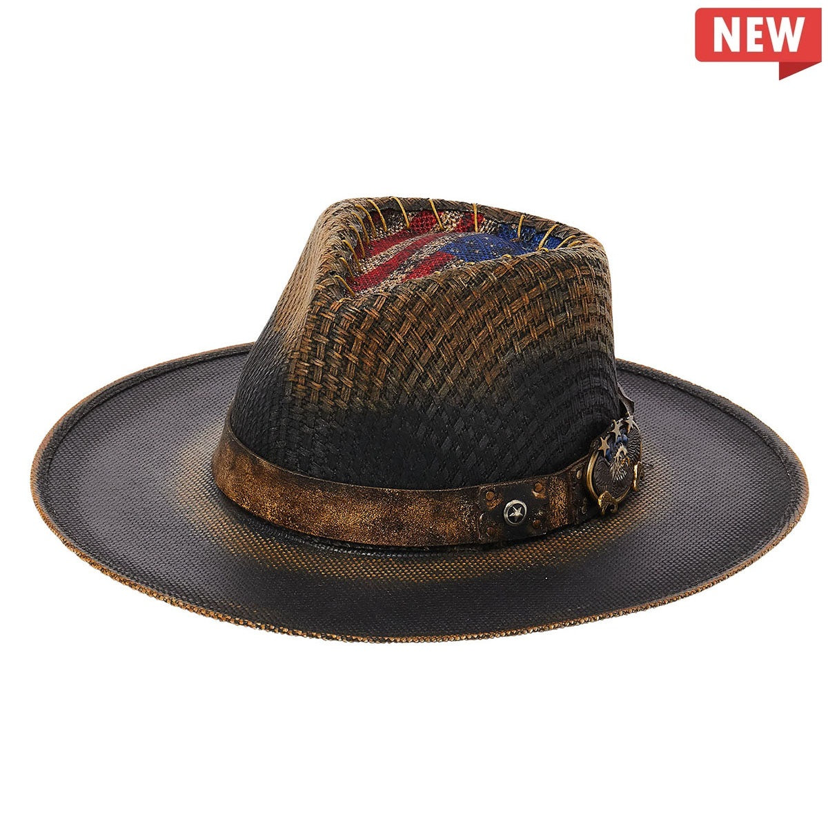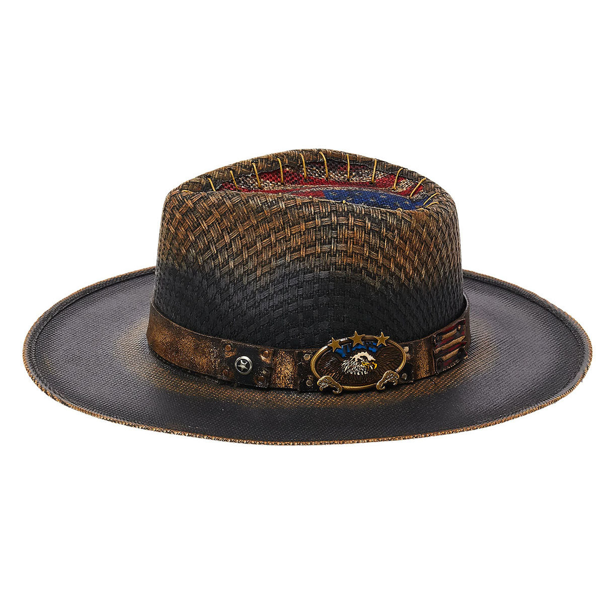 CHUCK from the Stampede Collection offers elevated style for everyday wear. Perfectly blending classic American elements with a modern design, this premium canvas hat features a genuine leather band with a star and flag pin, an eagle and star buckle, and an American flag stitched top. Resting atop a 3-inch flat brim, CHUCK adds a sophisticated touch to any look.