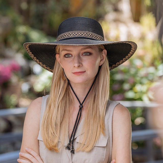 This stylish sun hat from the Kallina Collection protects you from the sun with U.V. protection and its adjustable chin chord ensures it stays securely in place. Woven with polyester, the intricate design on the crown and brim add a fashionable touch to any outdoor look.