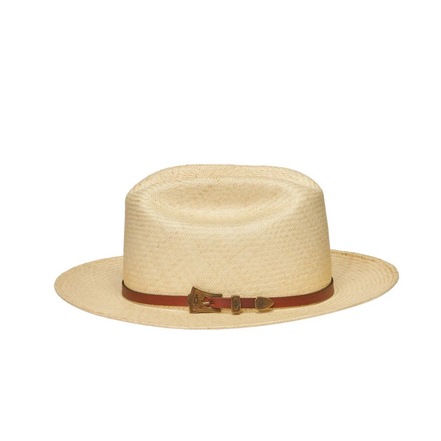 Expertly crafted from genuine Panama straw, the JAYLEE hat boasts a natural color and a 2.75 inch brim. The included brown buckle adds a touch of sophistication to this timeless accessory. Stay cool and chic in the heat with the JAYLEE hat.