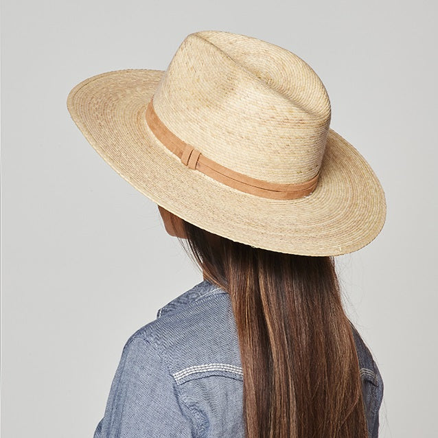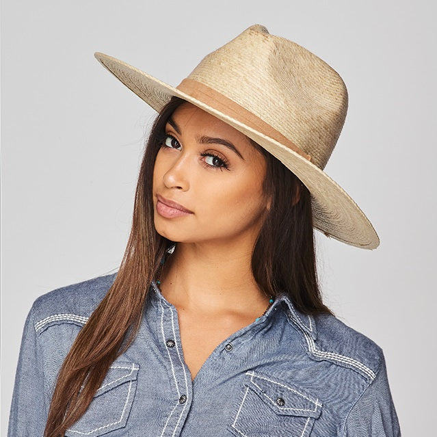 JODIE is the perfect choice for outdoor summer wear, providing reliable U.V. sun protection and a comfortable elastic fit band. The decorative leather band and palm leaf collection provide a fashionable touch, enhancing your look with a timeless feel.