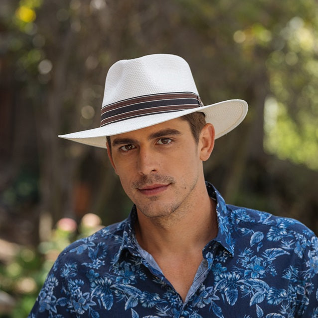 John is the perfect hat for any outing. Crafted from the finest, genuine Panama straw, it features a genuine leather band with decorative stitching and a gold pin for an elegant finish. With a 2.75" brim, this hat from the Austral Panama collection offers ultimate sun protection in a beautiful and classic style.