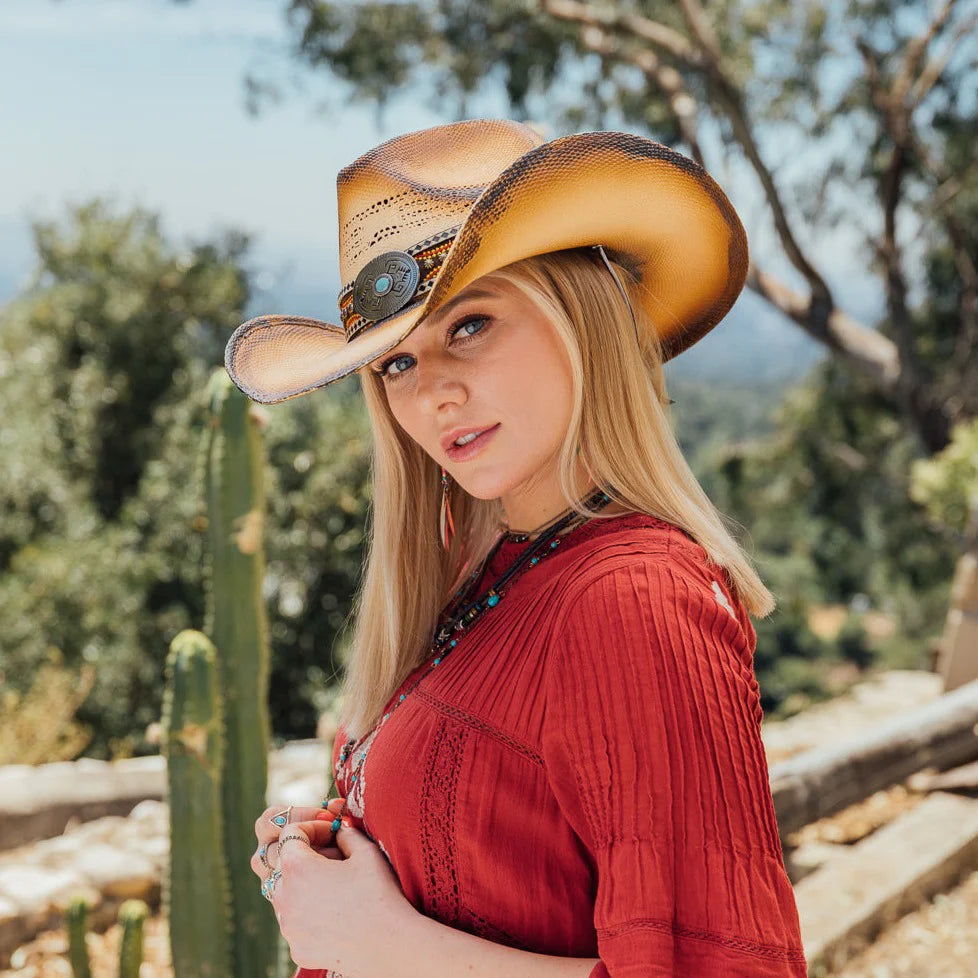 Made from genuine bangora straw, this tea-stained hat's brim measures 5 2/3 inches. Its durable construction and stylish design make it a must-have accessory for any outdoor event or activity. Stay cool and comfortable while looking effortlessly chic with LULU.