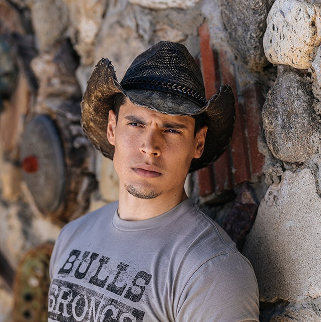 The MEMPHIS by Stampede Collection is a stylish premium straw hat. It is crafted from genuine Bangora straw, featuring a genuine leather band with chain link and cross stitched trim on the brim. The brim measures 3.75 inches with a vented crown, guaranteeing breathability and comfort. This hat was made for the modern cowboy.