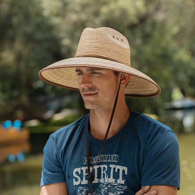 Protect yourself from the sun with the MIDWEST MAX! This classic five-inch brim straw hat is equipped with a U.V. protection additive, adjustable chin cord, and an elastic fit for maximum comfort. The vented crown and fashionable palm leaf design elicit a timeless lifeguard-inspired look.