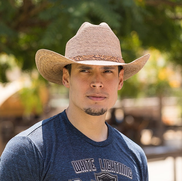 Bring sophisticated style and unique character to your wardrobe with the MX-940 hat. Boasting a genuine leather band with an intricate design, the MX-940 is made of durable palm leaf and provides excellent sun protection with its 4-inch brim. From the Saddleback Collection, this classic hat is the perfect way to get a timeless look.