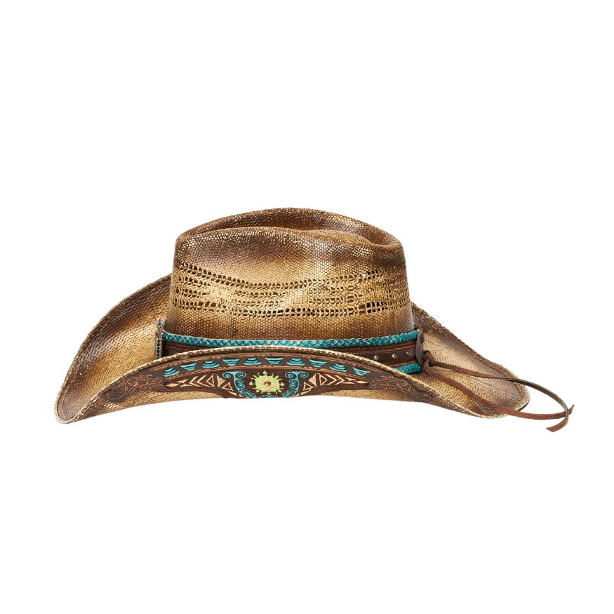 Introducing NEVEAH, the perfect hat for any outdoor occasion. Made with genuine Bangora straw, it boasts a tea-stained finish for a timeless look. With a 7 2/3 inch brim, you'll stay shaded and stylish all day. Make a statement with NEVEAH, the expert's choice.
