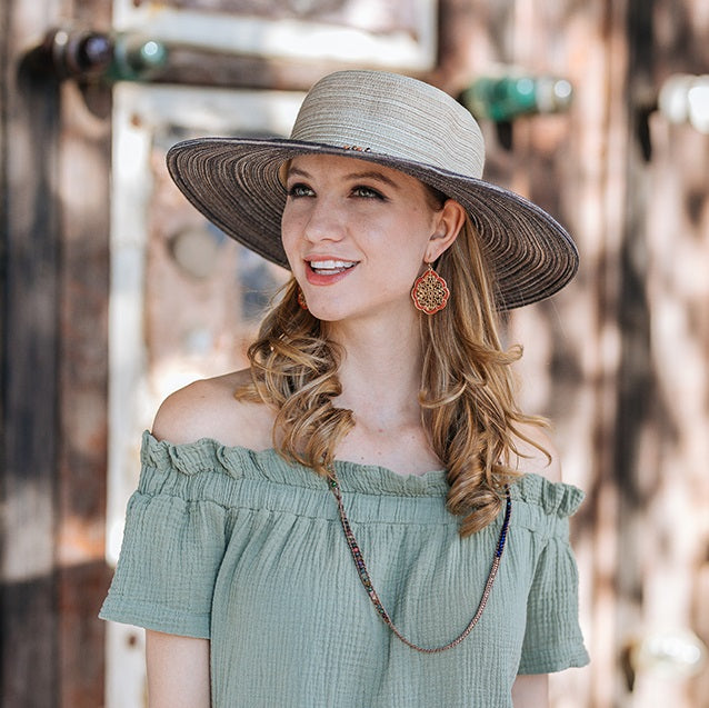 The NH-0807 from the Kallina collection offers both style and U.V. protection with its genuine Toyo straw construction and wide colored brim. The adjustable braided chord with beads ensures that you can find the perfect fit, while the lightweight elastic fit offers all-day comfort.