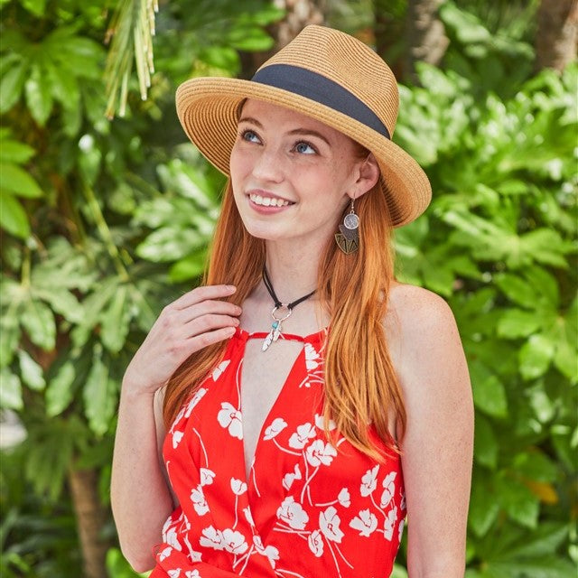The Kallina Collection's NH-2403 hat is a reliable and stylish choice for any outdoor adventure. It features an elastic fit for enhanced comfort, and is made with an expert blend of Toyo Straw and Polyester Cotton that is designed to provide superior UV sun protection.