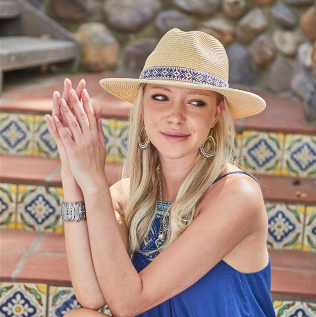 The Kallina Collection's NH-2407 is a must-have for those seeking a stylish and comfortable hat. Crafted using a blend of Toyo Straw and Polyester Cotton, this hat offers optimum durability and UV sun protection. Its intricate design and elastic fit make it a great choice for any outdoor activity.