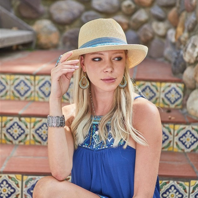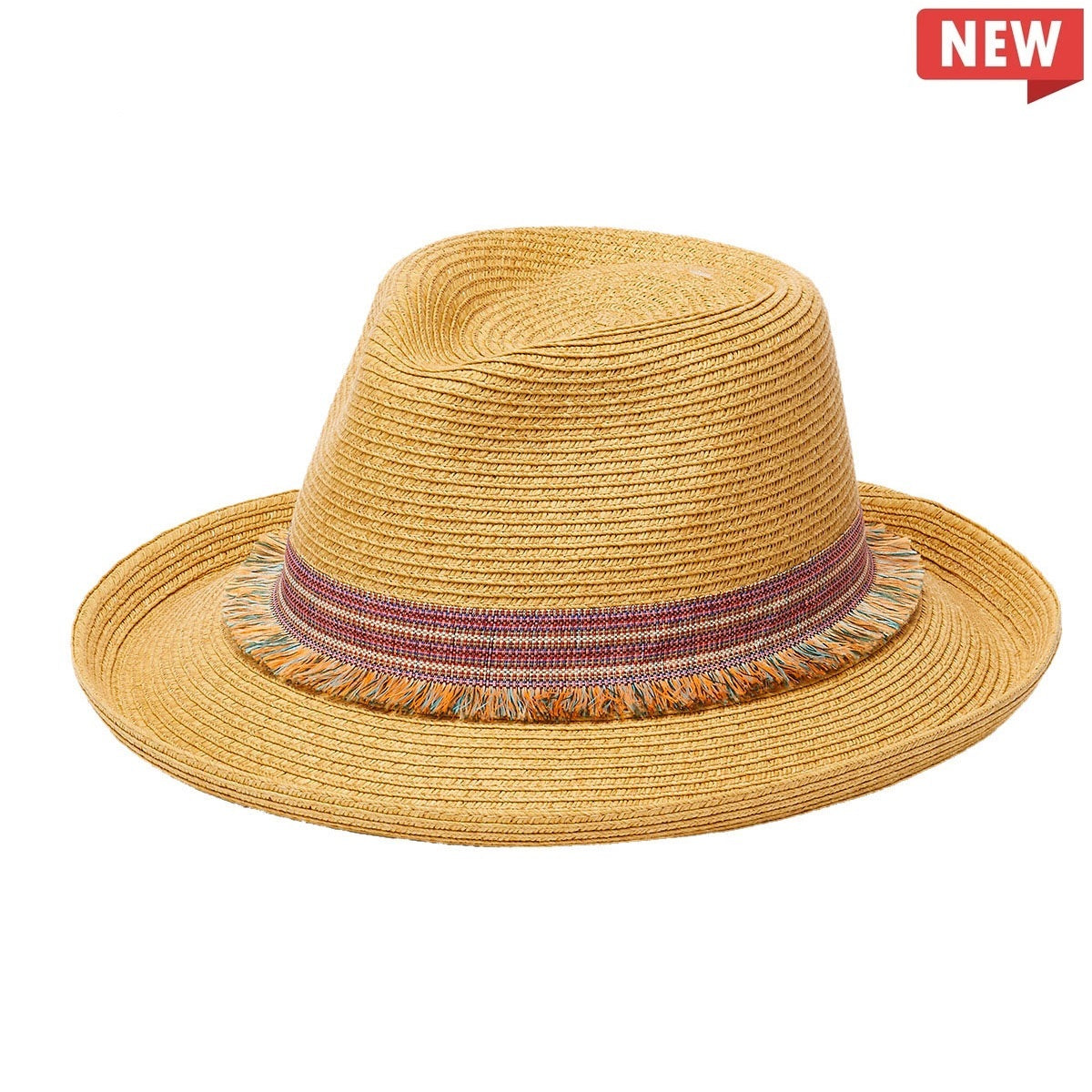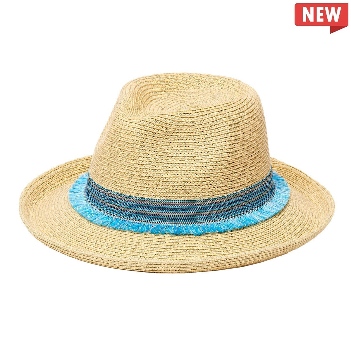 The NH-2413 cap from the Kallina Collection is the perfect choice for sunny days. Featuring a stylish blend of Genuine Toyo Straw and Polyester Cotton, with frayed edges, this cap offers superior U.V. sun protection, and an elastic fit for comfort and security.