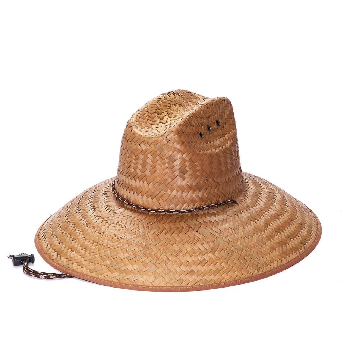 This ORIGINAL hat from the Lifeguard Collection offers U.V. sun protection with an elastic fit and adjustable chin cord for a comfortable fit. The 5-inch brim features palm leaf detailing for a classic straw hat look. Perfect for summertime activities.