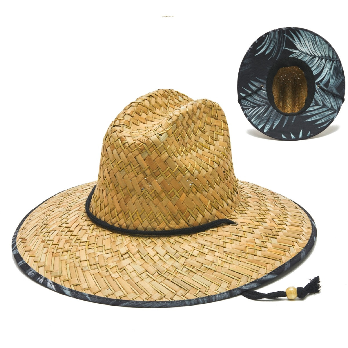 The PEACEFUL PALM hat is perfect for outdoor activities. With an adjustable chin cord and elastic fit, this hat will stay securely in place in any conditions. This hat also offers UPF 50+ sun protection, great for those hot days. It features a 5 inch brim and classic straw hat look with palm leaf prints under the brim, from the Lifeguard Collection.