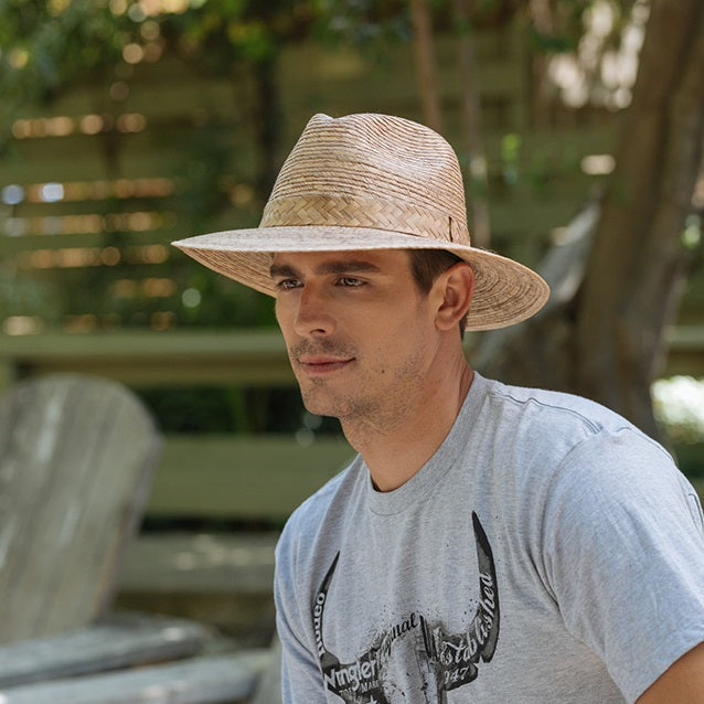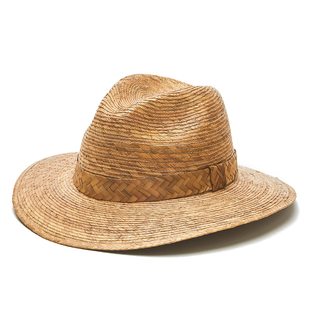 PETER offers maximum sun protection for the beach, with a durable U.V. fabric and an elastic fit band. The decorative leather band and Palm Leaf Collection add a stylish touch. Look great and stay safe in PETER.