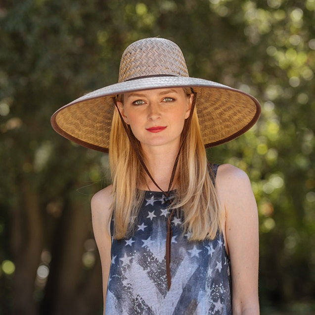 Introducing the SALLY Straw Hat— its 6.5 inch brim features a U.V. sun protection rating and elastic fit for maximum comfort. Crafted from palm leaf, it sports a classic straw hat look with an adjustable chin cord and vented crown. From our Lifeguard Collection, this hat is perfect for both sun protection and style.
