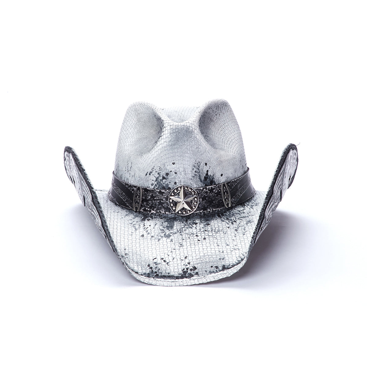 This SILVER EAGLE hat is designed with premium canvas and features a color brooch and brown leather band. The 3.75 inch brim is decorated with an eagle and American flag design, while the Star Buckle and Stampede Collection give it a stylish and patriotic look. Show off your American pride with this classic hat.