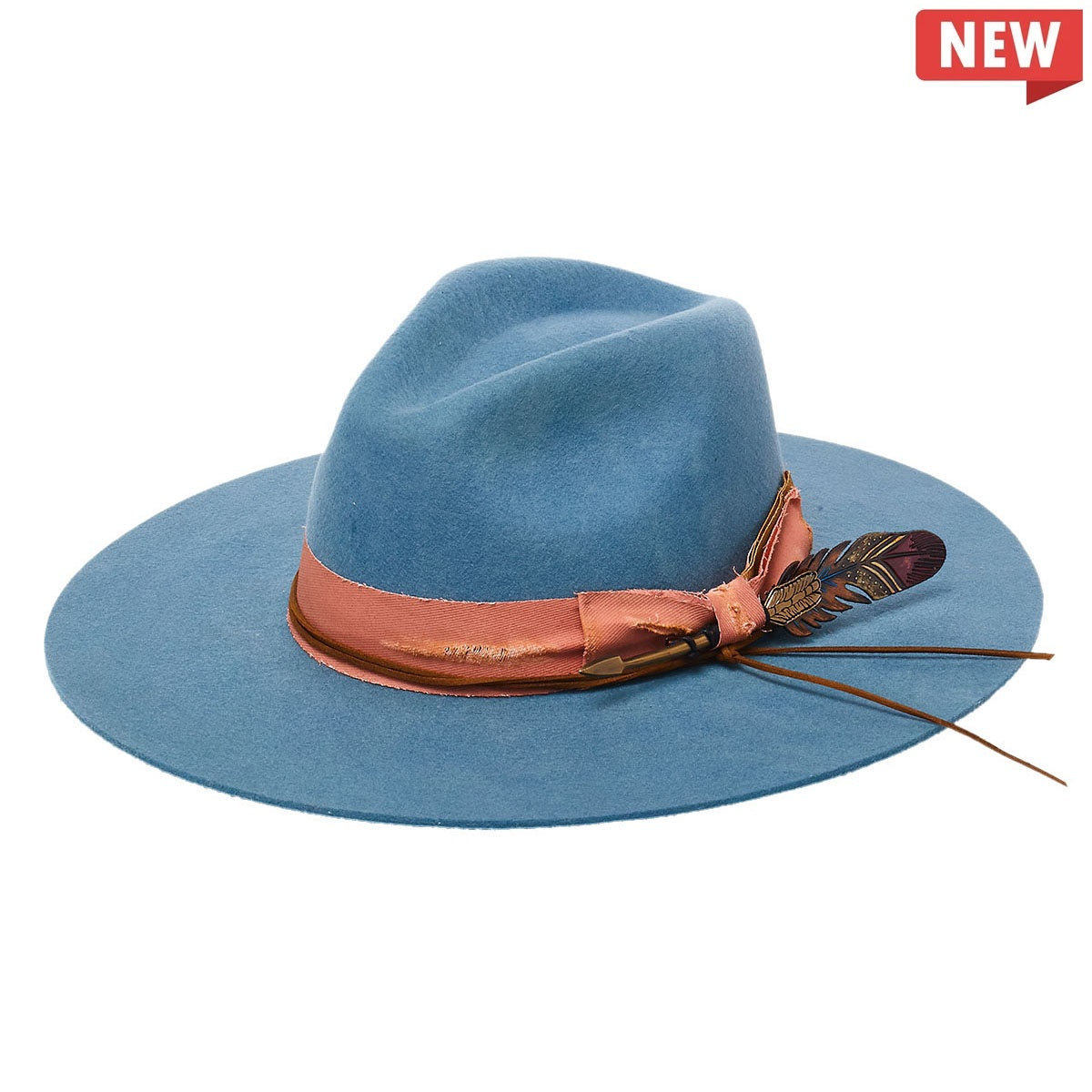 STACEY from the Stampede Collection is a stylish western hat made from quality wool felt. The polyester ribbon includes a feather insert on the side and the metal arrow decoration gives it a distinctive cowboy look. The suede chord ensures a snug fit and the 3.5 inch flat brim is perfect for keeping the sun out of your eyes.