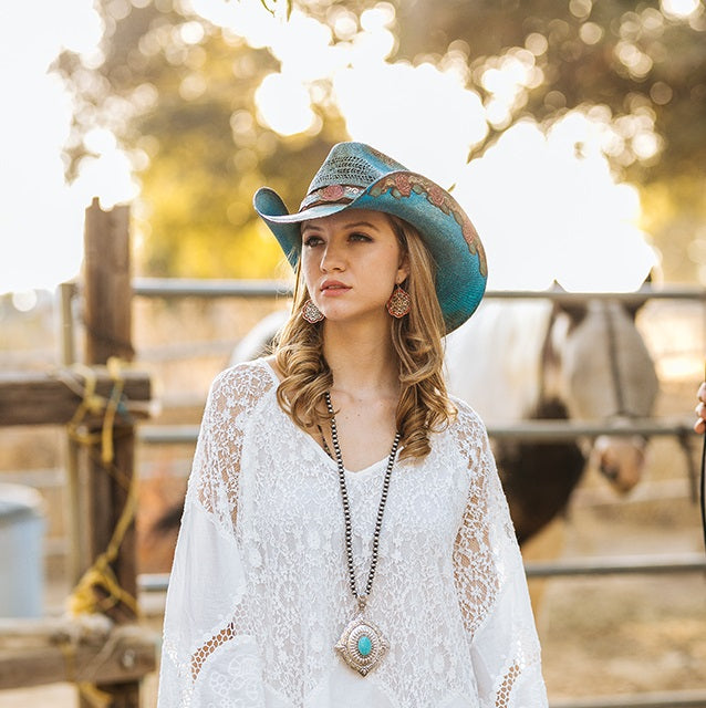 Introducing the TENNESSEE from the Stampede Collection, featuring genuine Bangora straw and a genuine leather band with rose designed embroidery. The vented crown and 4-inch brim feature a rose design embroidered detailing for a classic look. Crafted with quality materials, the TENNESSEE is perfect for all your outdoor adventures.