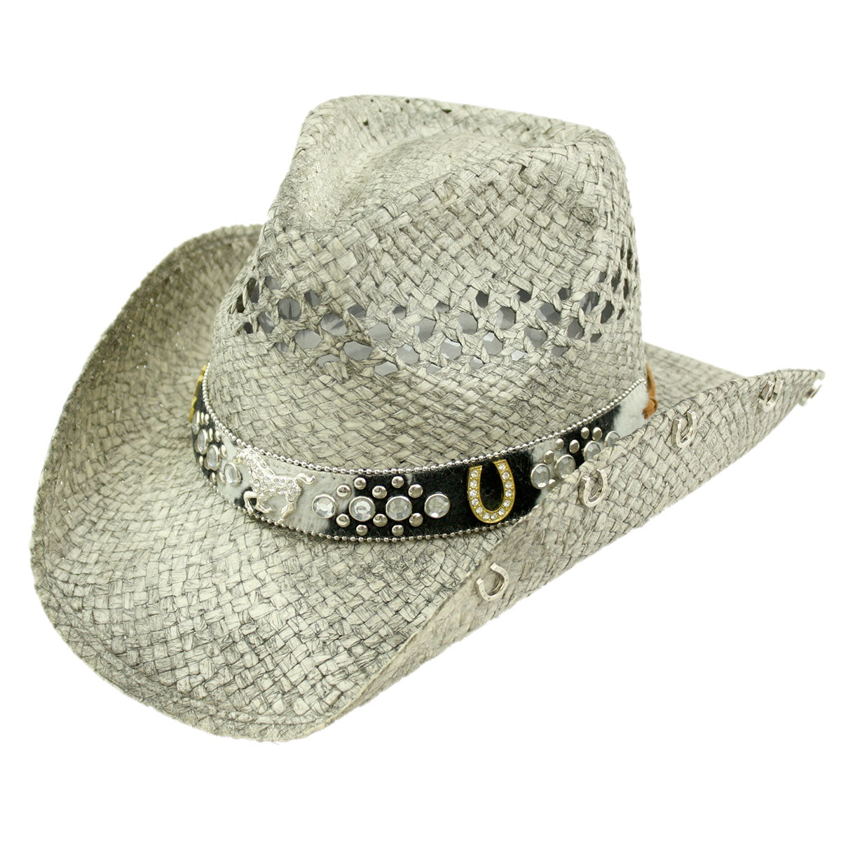 Introducing the TX-1065 from the Saddleback Collection. Crafted with Toyo Straw, leather band, and horse buckle with horseshoe pins, this hat offers maximum durability and style. The shapeable wired brim and vented crown make this stylish piece a must-have for keeping you cool on a warm day.