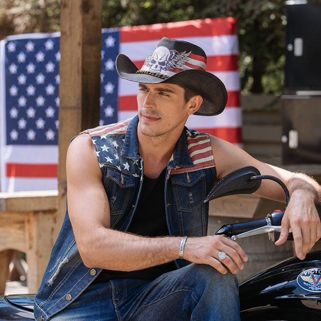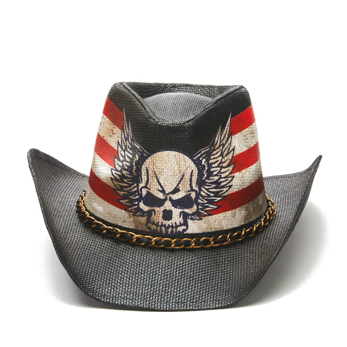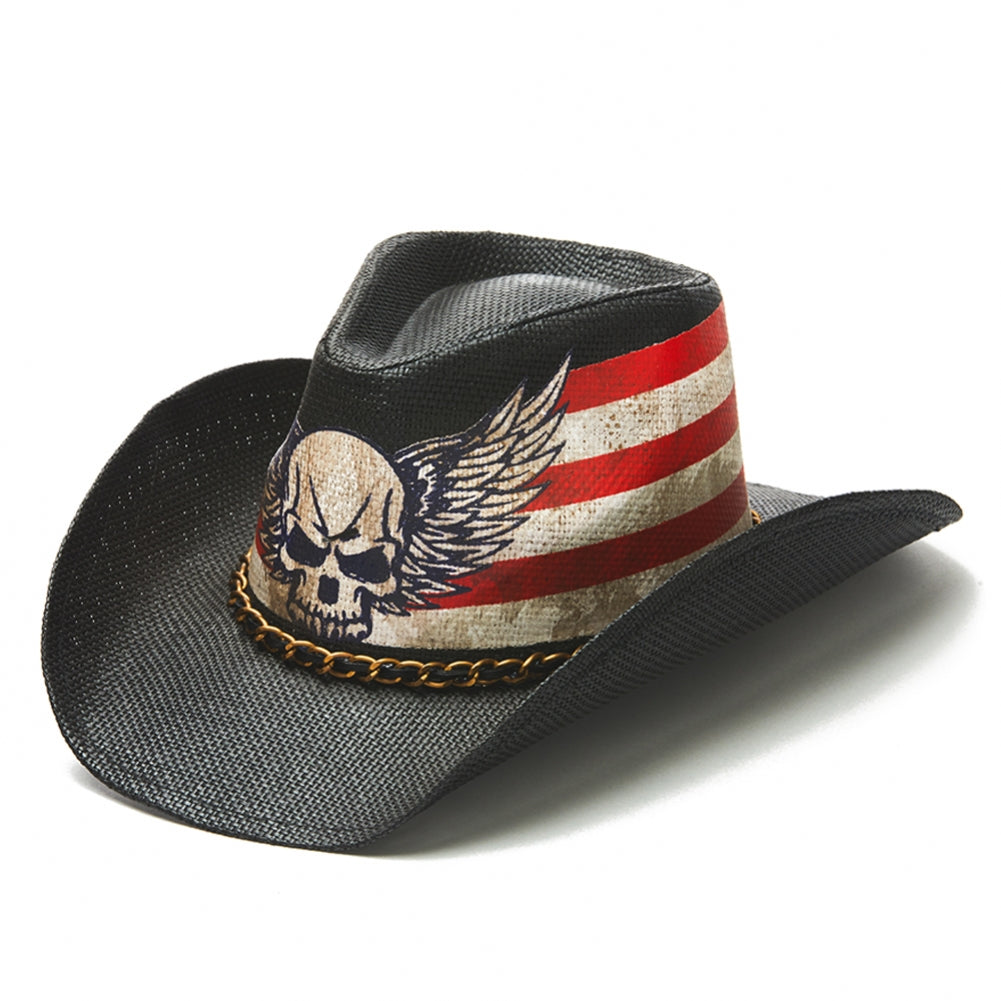 The TX-1225 is part of the Saddleback Collection and is crafted with genuine Toyo Straw for a lightweight look and feel. Featuring an American flag and skull design on the crown, this hat is sure to stand out. Its shapeable wired brim has a 3.5 inch length and will stay in place, all day.