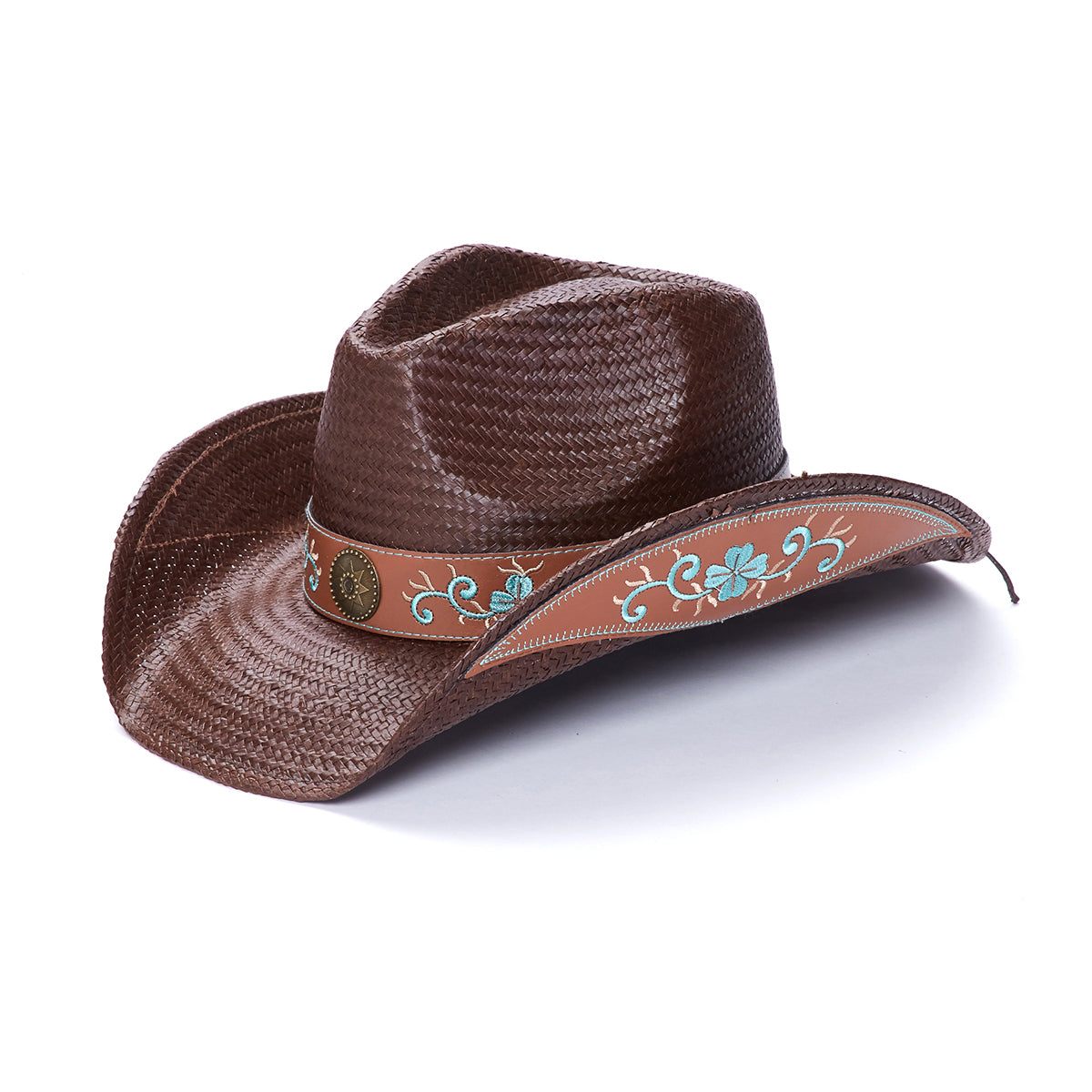 The TX-2220 from the Saddleback Collection features genuine Toyo straw and genuine leather with a floral design. This well-crafted hat also features a star buckle and a 3.5-inch brim, giving you the flexibility to shape it your way. Step out in style with this unique hat.