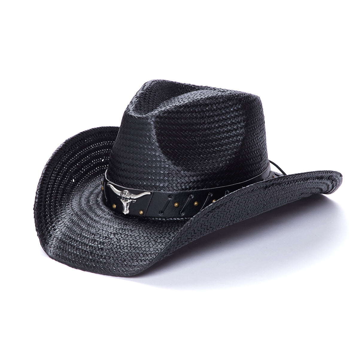 The TX-2225 is a classic hat from the Saddleback Collection, made from genuine Toyo straw for quality and durability. The genuine leather band is detailed with subtle stitching and mini studs, making it the perfect accent piece to any look. A large longhorn pin accents the brim, and can be shaped to fit any style. An impressive 3.5 inch brim completes the timeless design.