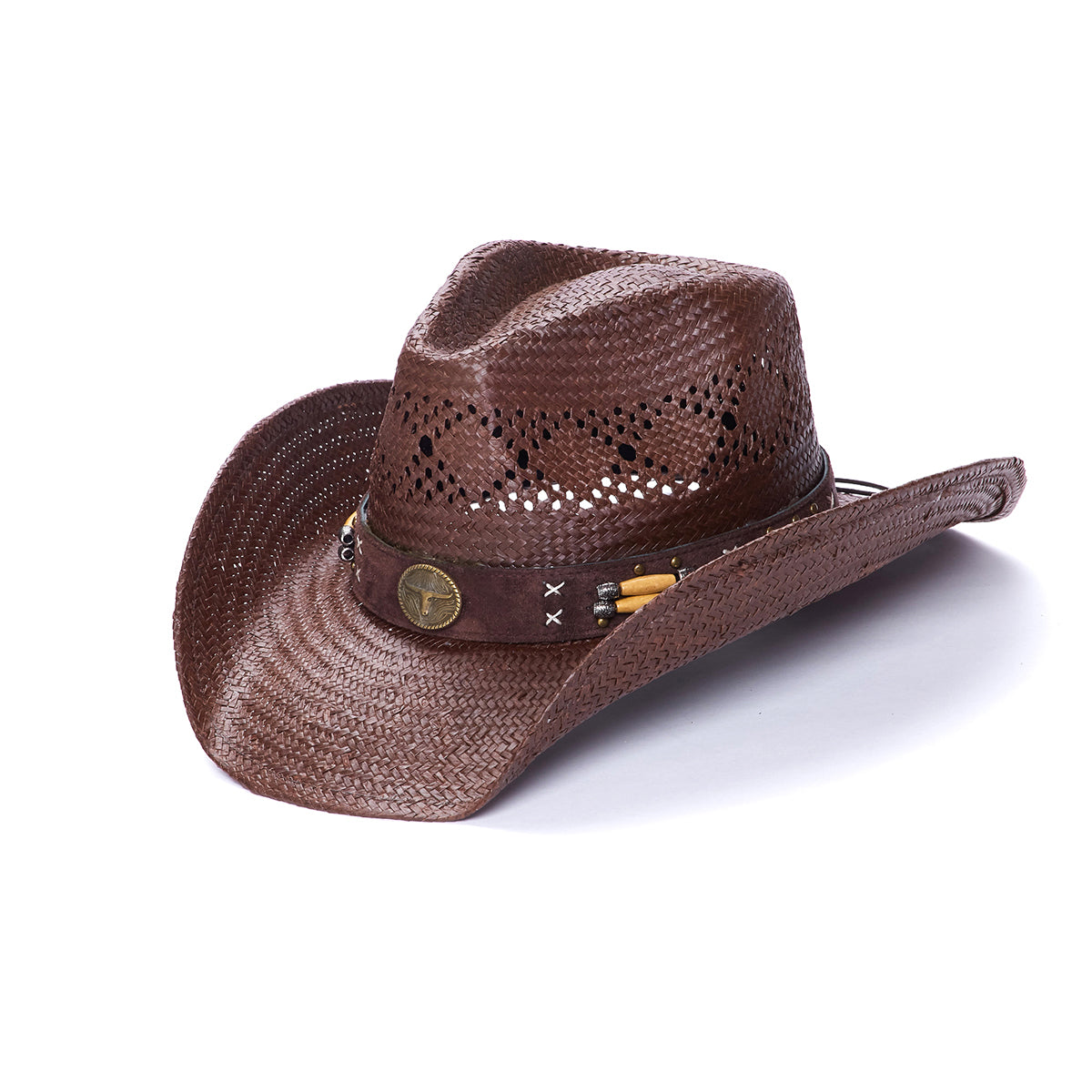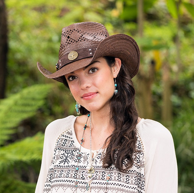 The TX-2240 makes a statement with its genuine Toyo Straw construction, genuine leather band stitching, and mini studs. It also features a longhorn buckle and a shapeable wired brim. Its 3.5 inch brim and vented crown complete the classic look from Toyo's Saddleback Collection.