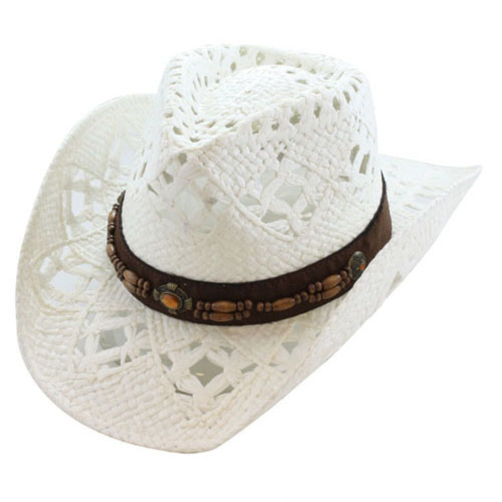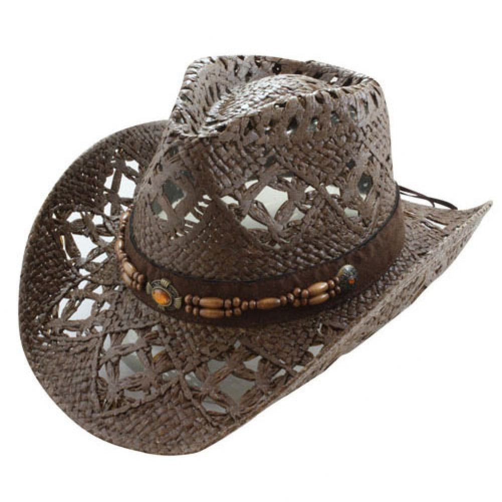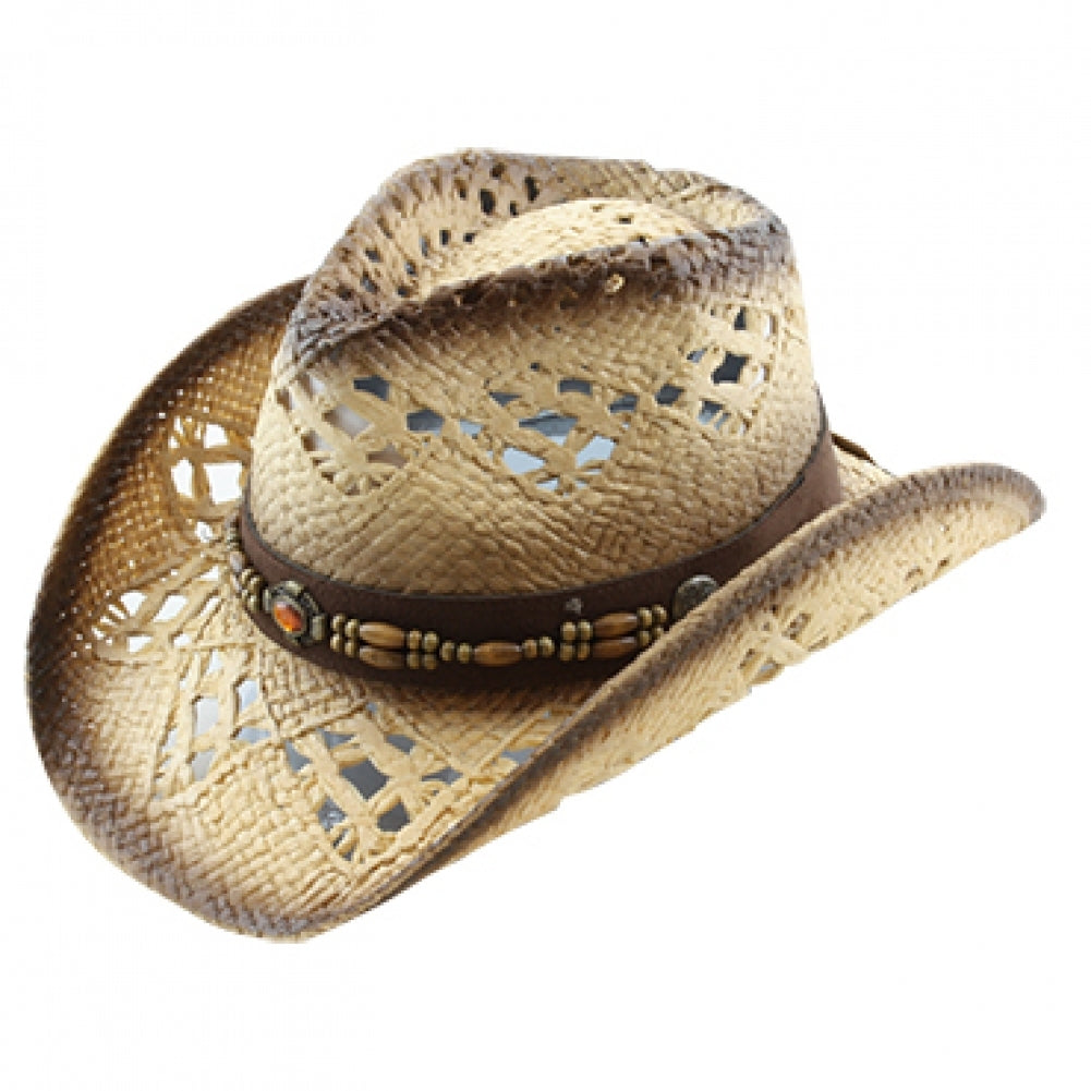 The TX-800 straw hat is both stylish and comfortable. It is crafted from genuine Toyo straw with a genuine leather band featuring mini studs and a large longhorn buckle. The shapeable wired brim and vented crown complete the look, making it a great accessory for the Saddleback collection.