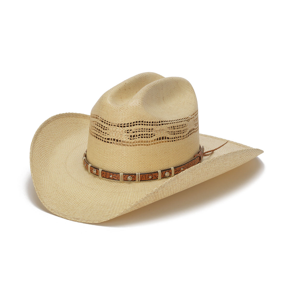 The VIEJA is perfect for any outdoor adventure. Made with a sleek bangora straw material, this hat offers a 4-inch curved brim for dependable sun protection. It also has a brown leather band with round studs for a modern, sophisticated look. Plus, its vented crown design and X-Comfort moisture-wicking sweatband keep you cool and comfortable all day long. Part of the Stampede Collection, the VIEJA is perfect for your next outdoor excursion.